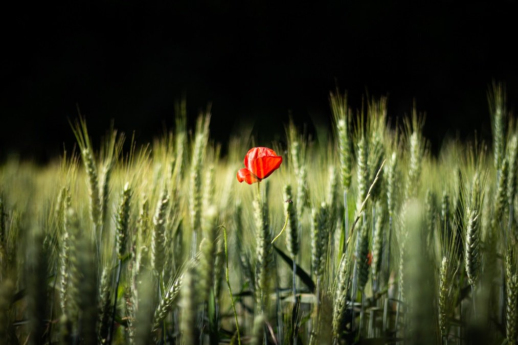 Une fleur au rouge parfait, perdue et solitaire, au milieu d’une foule verte austère… serait-ce un indice qui me mènera bientôt vers un beau champs rouge rempli de coquelicots ?