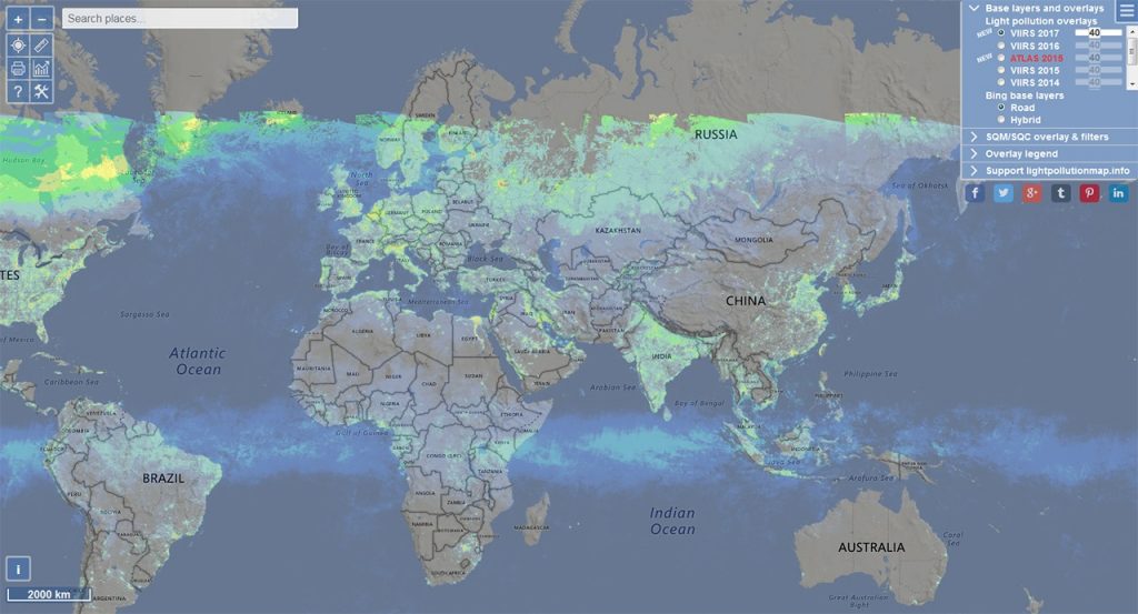 Il existe aussi ce site en anglais, qui propose également une carte de la pollution lumineuse mondiale. Une carte intéressante et triste en même temps.