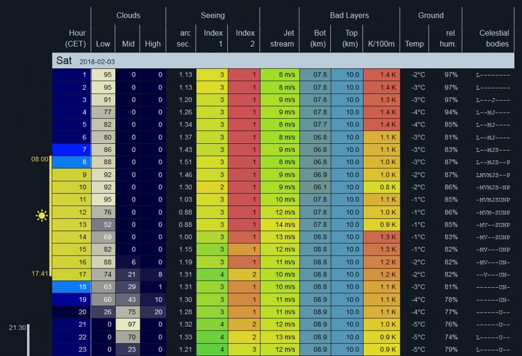 Enfin, pour peaufiner au maximum les sorties, ce site vous aidera pour les prévisions météo. Il détaille heure par heure l’état du ciel, comme la présence de nuage, la qualité de la visibilité, l’humidité, la température…