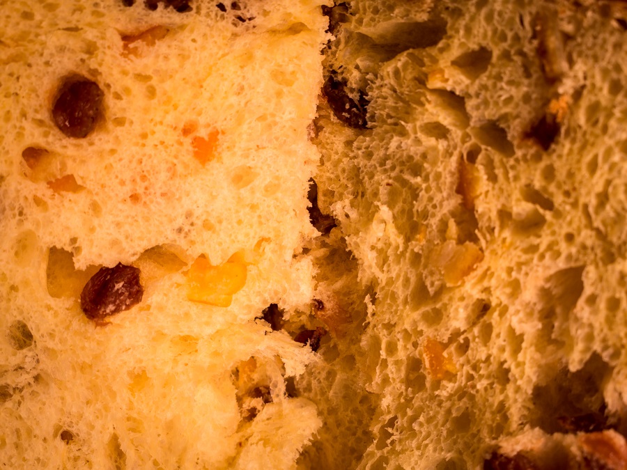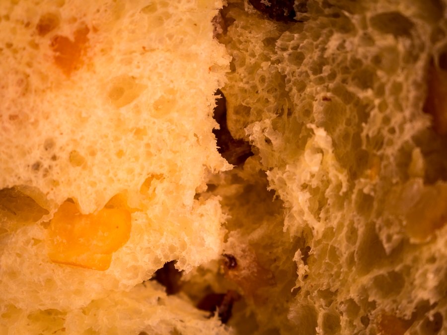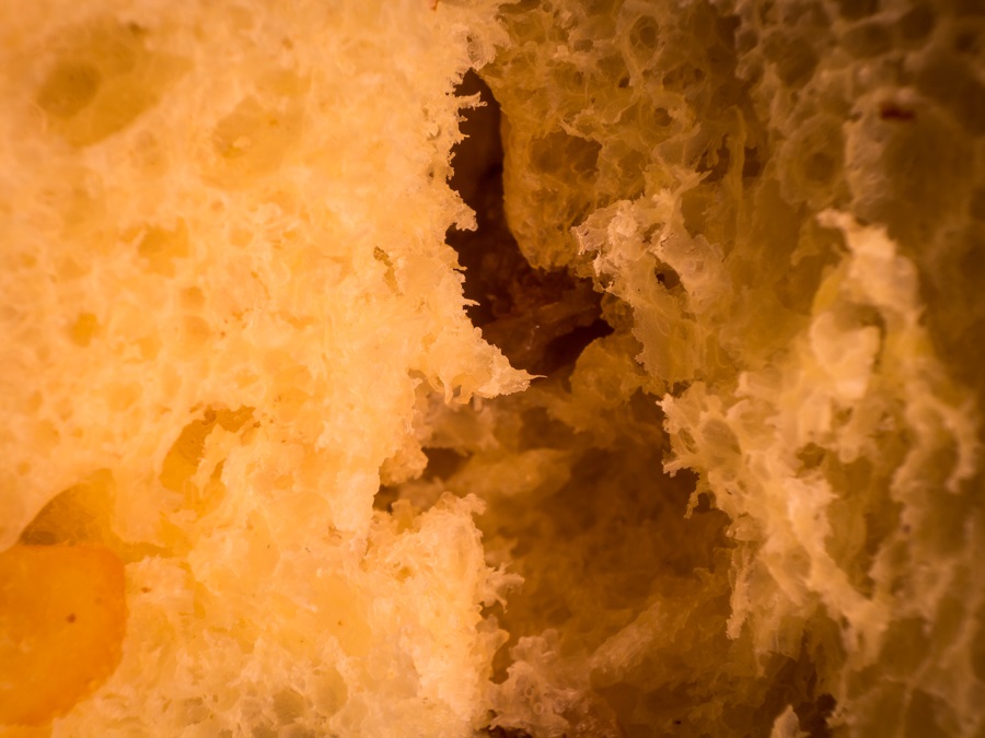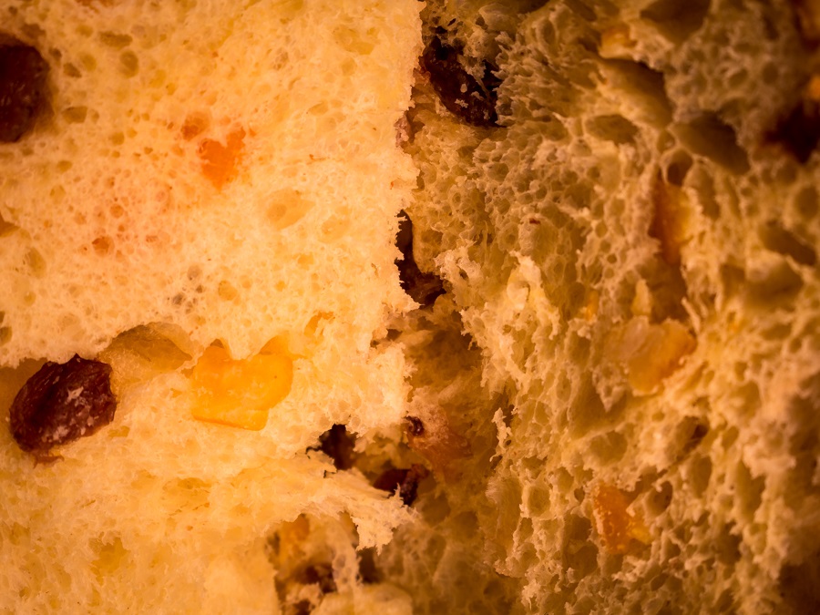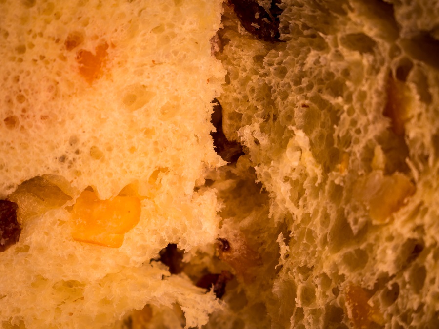 En utilisant un objectif 18-55mm de Canon, fixé dans le bon sens, puis en le fixant à l’inverse, il est possible d’obtenir une série de clichés de l’objet ciblé. En démarrant à 18mm, puis 24 – 35 – 45 et enfin 55mm, pour ensuite faire la même chose en inversant l’objectif, voici une exploration macro d’une panettone. Depuis la vue en globalité jusqu’à la mie de la brioche, petit plongeon gastronomique…