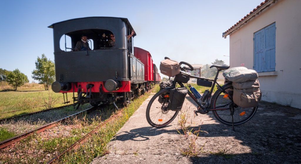 Le Train des Mouettes immortalisé lors d’une de ses traversées, patiemment attendu par des biketripeurs ! 😎