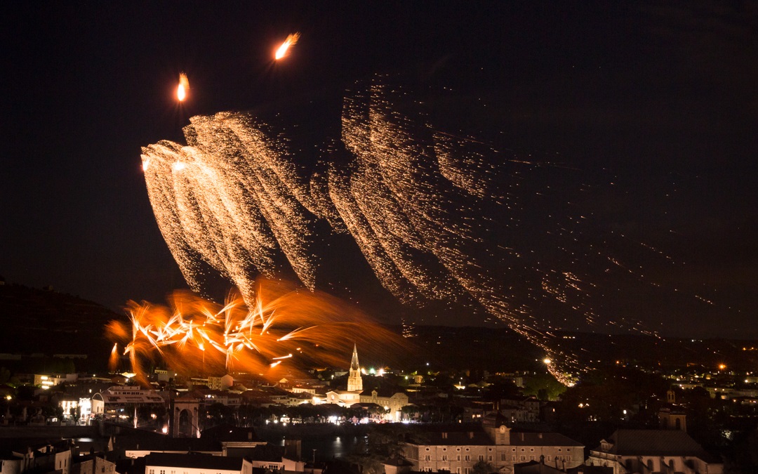 Un beau feu d’artifice tiré de la passerelle Marc Seguin, comme chaque année, et illuminant bien les deux villes bordant le Rhône et ses centaines de spectateurs