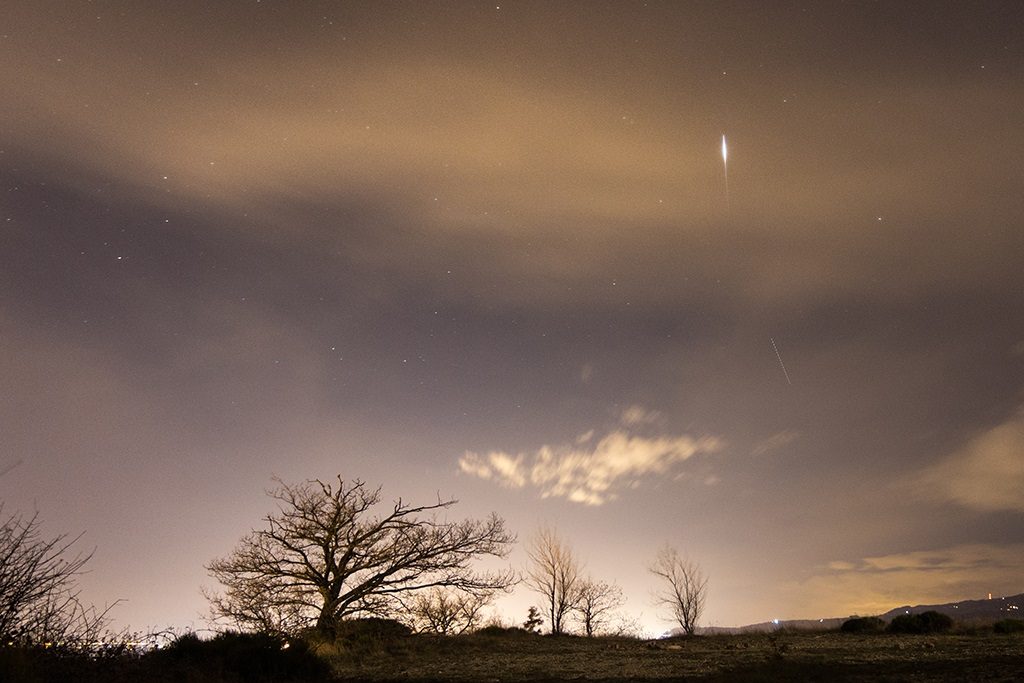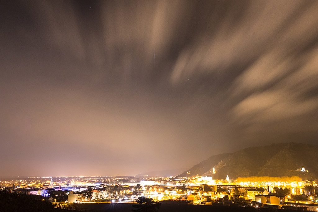 Les deux satellites faisaient une orbite du nord vers le sud, au dessus de la France en direction de l’Afrique, avec les flashs au niveau des côtes algériennes. Photos prises sur les hauteurs de Tournon sur Rhône et depuis la Colline de l’Hermitage.