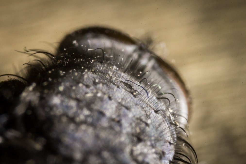 Toujours dans les prémices de la macrophotographie avec la technique du pauvre et l’inversement d’objectif à la main, voici une mouche trouvée sur le carrelage. Elle est probablement venue se réfugier du froid ou mourir au chaud… ou les deux ^^. Elle a vogué au gré des courants d’airs sur le carrelage une bonne partie de la journée, d’où le fait qu’elle soit pleine de saletés cette souillon ! 😄