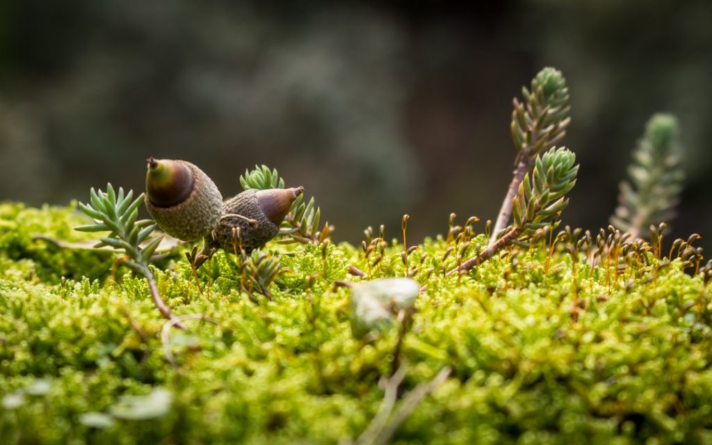 La randonnée c’est super pour photographier les paysages, mais parfois, scruter le sol peut révéler de très beaux petits mondes. On y trouve par exemple deux p’tits glands perdus dans un forêt interplanétaire, des arbres inconnus, une végétation étrange et abondante…