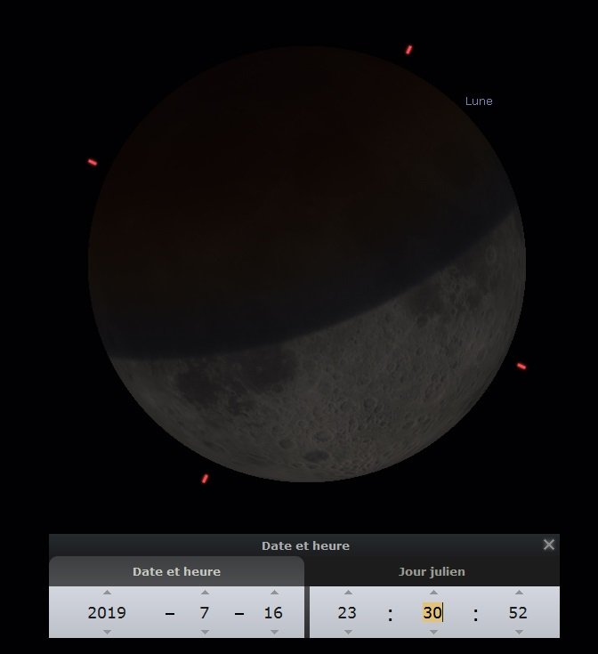 La Lune se lèvera ce jour-là à 21h30 au Sud-Est, et malgré que l’éclipse ne débute pas tout de suite, c’est l’occasion d’assister à un lever de Lune, chose toujours très jolie avec les couleurs du soir.