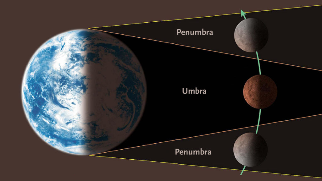 Une éclipse totale elle, verra la Lune passer entièrement dans la pénombre et l’ombre de la Terre, alors qu’une éclipse partielle, passera totalement dans la pénombre mais que partiellement dans l’ombre de la Terre.