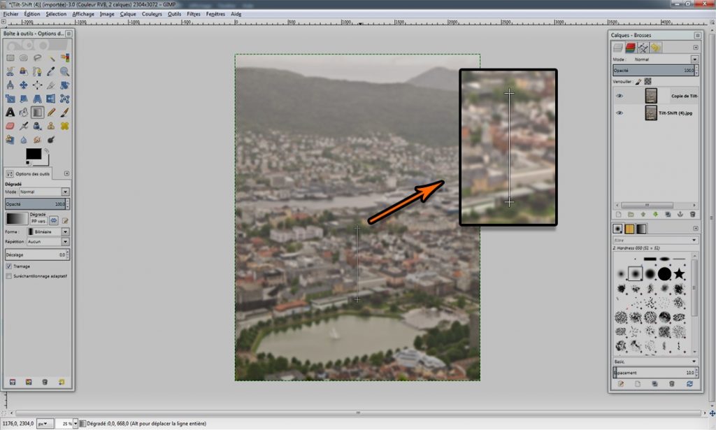 Voilà, le Tilt-Shift sur The Gimp est terminé 🙂 (pour enregistrer votre travail en JPEG, faites « Fichier » > « Exporter sous » ).