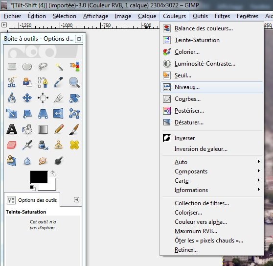 Commençons par donner de belles couleurs à la photo en faisant, dans les menus du haut, « Couleurs » > « Niveaux » .